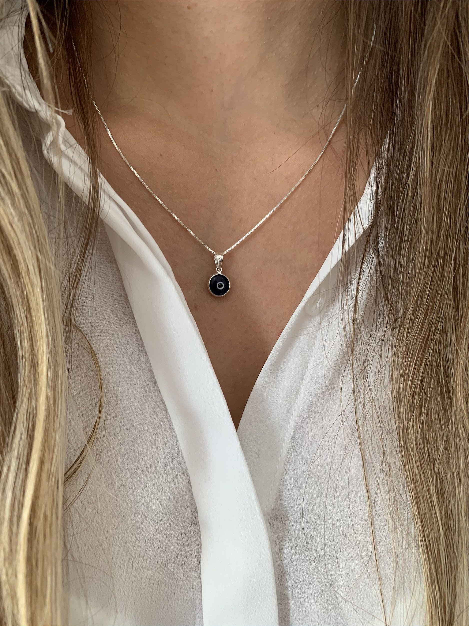 Pingente avulso de olho grego azul escuro em Prata 925.